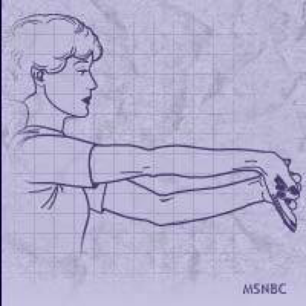 Position your right arm straight in front of you with your palm facing outward and your fingers pointing down. Using the left hand, gently pull the palm toward you and hold for a count of 10. Next, raise your hand so that your palm is facing away from your body and your fingers are pointing toward the ceiling. With the left hand, gently pull the right hand toward your body and hold for a count of 10. Repeat with the left arm.