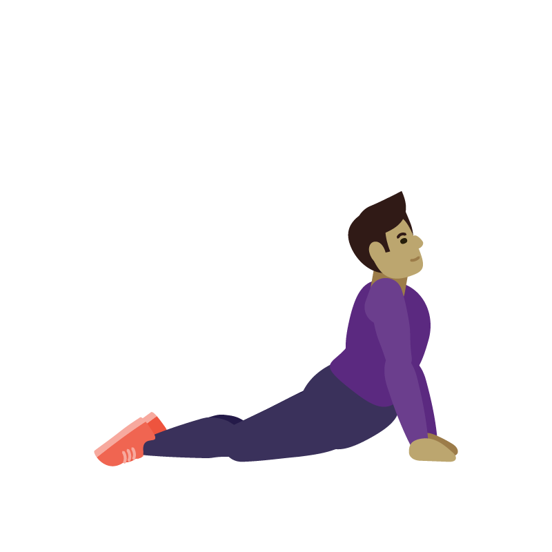 Lie down on your belly. Bring your elbows underneath your shoulders with your palms to the ground. Relax your shoulders and stay here for a few rounds of breath. You can stay in sphinx pose if this is a comfortable gentle stretch. For a deeper stretch, slide your forearms 2 or 3 inches forward and push the palms of your hands into the floor. Press your upper body off the floor and engage your lower body. Remember to keep your breath slow and steady. Straighten your arms as much as you can without locking your elbows. You can slide your hands forward to make this stretch more comfortable. Stay here for a few rounds of breath before bringing your elbows back to the floor and coming out of the pose.