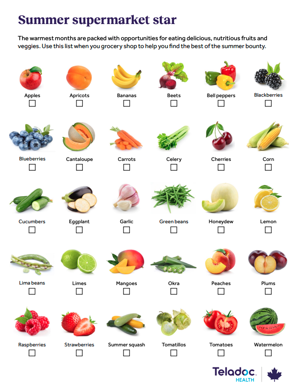 Summer Grocery Shopping List Get the Guide Fruits and veggies taste best when they're in season! Use this list to help you shop for the best of the summer bounty. Return to top