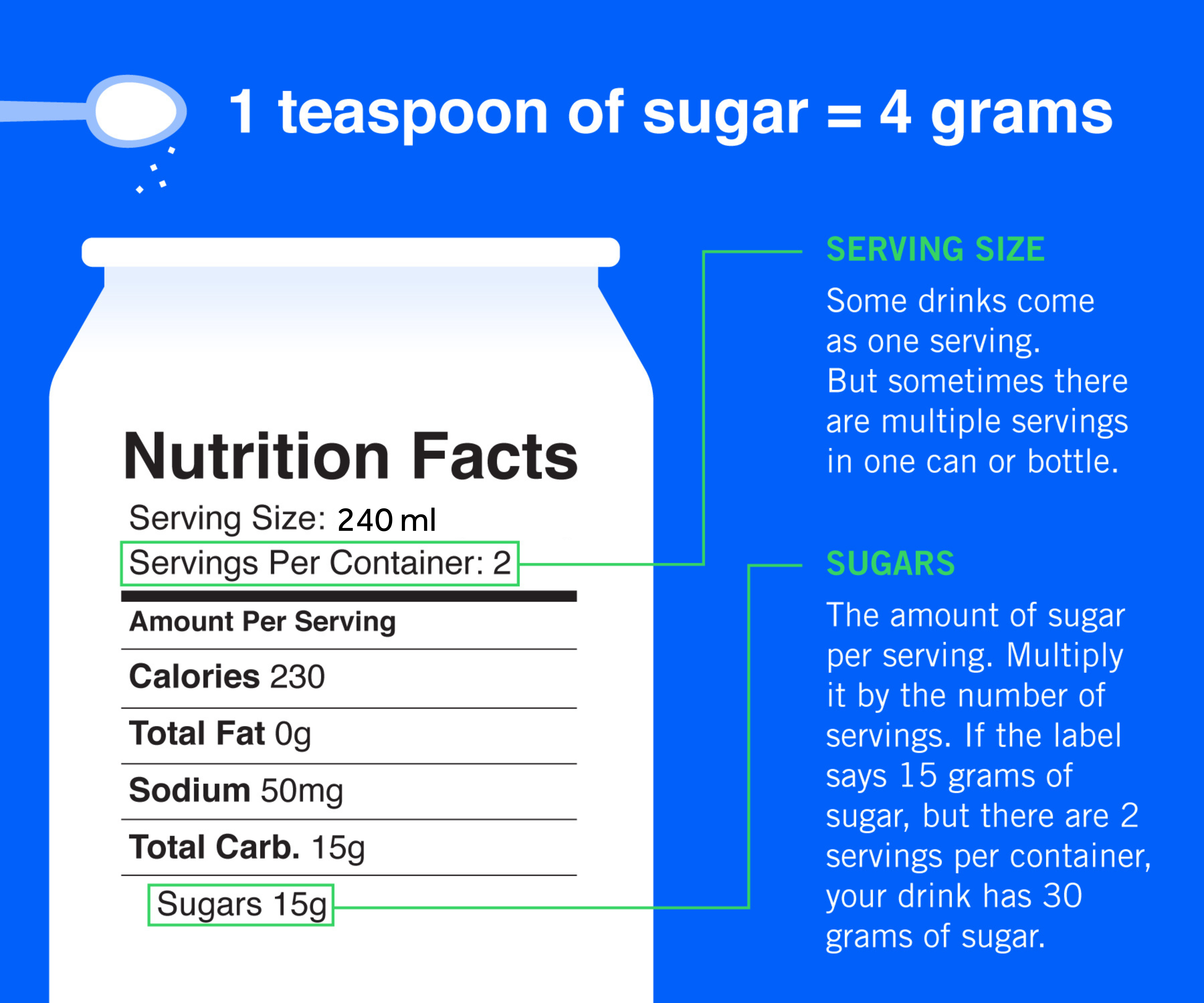 Use nutrition labels to your advantage. Scope out those hidden sugars so you can make an informed choice about what sugary beverages you want to drink ― and which ones you’d rather swap out for a glass of pure, calorie-free water.