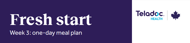 Fresh Start Week 3: One-Day Meal Plan Get the Guide Related articles Fresh Start Week 4: One-Day Meal Plan 10 Healthy Snack Combos for Weight Loss 10 Healthy, Low-Carb Swaps for Winter Holidays Return to top