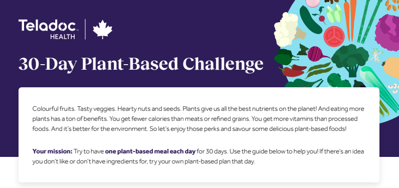 Your mission: Try to have one plant-based meal each day for 30 days. Use the guide below to help you! If there’s an idea you don’t like or don’t have ingredients for, try your own plant-based plan that day.