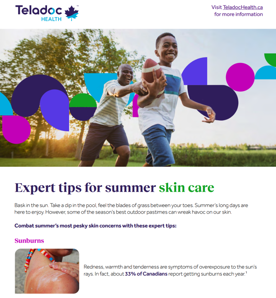 July 2025 Newsletter Download the newsletter This month's newsletter includes: Expert tips for summer skin care "Workouts" found in everyday activities Foods to fight inflammation Upcoming Wellness Webinar: Prioritizing self-care Related articles August 2025 Newsletter Men’s Health in Virtual Care September 2025 Newsletter So you've just been diagnosed with diabetes. Now what? Calculate your protein needs Return to top