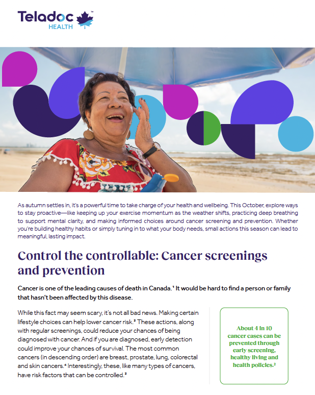 October 2025 Newsletter Download the newsletter This month's newsletter includes: Control the controllable: Cancer screenings and prevention Keeping momentum as the seasons change Breathe deep for better mental health Related articles September 2025 Newsletter November 2025 Newsletter Ways to Work with Your Anxiety Kokum Brenda Prayer for Depression Pay Off your Credit Card Debt Challenge Return to top