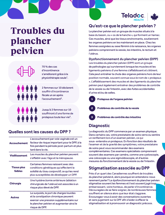 Fiche d'information sur les troubles du plancher pelvien Obtenez votre feuille gratuite Articles associés Le défi du sommeil 5 activités d'exercice à essayer après la ménopause Fiche d’information sur les troubles de l’humeur et de l’anxiété Qu'est-ce que la santé du plancher pelvien? Retour en haut