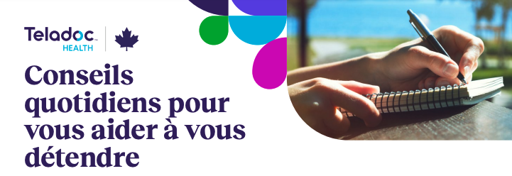 Pour vous aider à prendre l’habitude de vous sentir plus détendu, nous avons mis en place 3 semaines de défis de 5 jours. Voici des choses que vous pouvez faire tous les jours pour vous sentir plus détendu. Vous manquez un jour? Pas de problème. Ces conseils sont suffisamment rapides pour que vous puissiez les doubler. Pour un mois complet d'exercices de relaxation, notez vos cinq conseils préférés et créez votre défi pour la semaine 4!