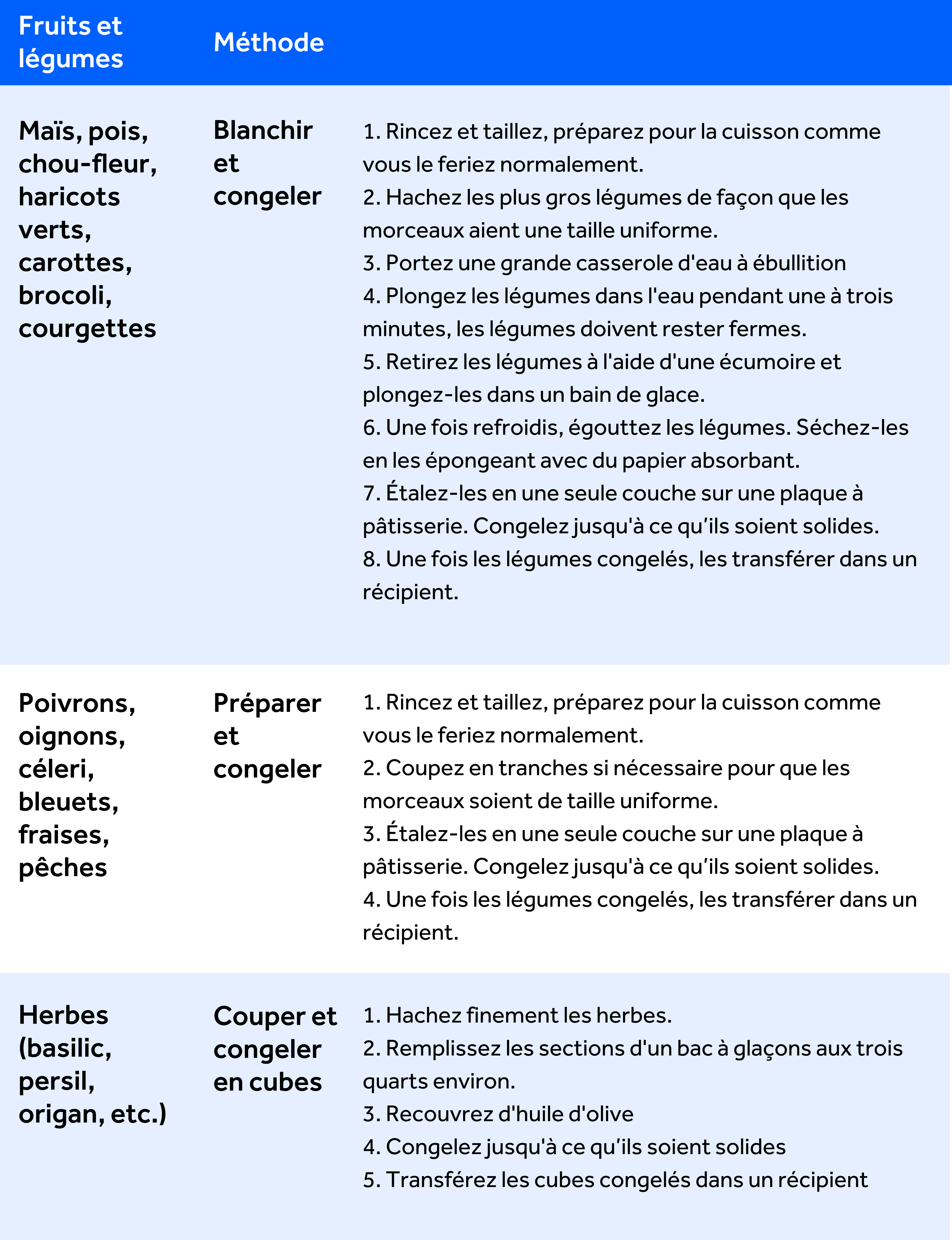 Si l'abondance des récoltes de cette saison vous fait nager dans les fraises et autres produits délicieux, c'est le moment idéal pour apprendre quelques techniques de conservation. En apprenant les meilleures façons de congeler les fruits et les légumes, vous pouvez les conserver pendant des mois. Une fois qu'ils sont conservés, vous pouvez ajouter des éléments nutritifs à vos repas et à vos collations, prêts à manger!
