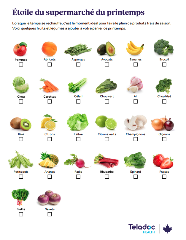 Lorsque le temps se fait plus doux, c'est le moment idéal pour faire le plein de fruits et légumes frais. Ajoutez ces fruits et ces légumes à votre liste d'épicerie ce printemps.