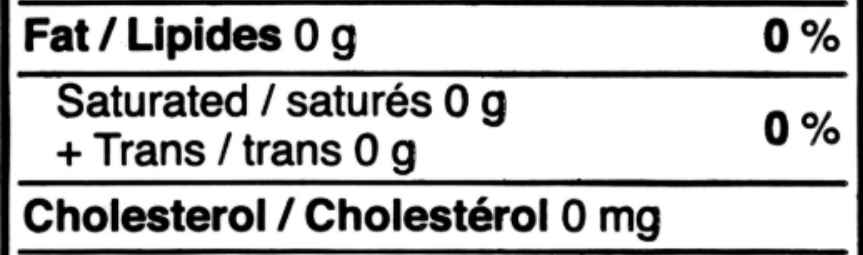 Guide rapide de la valeur quotidienne : les pourcentages de valeur quotidienne sont basés sur un régime de 2 000 calories, ce qui peut être plus ou moins que vos calories quotidiennes recommandées. Ce guide a été créé pour s'aligner sur les apports nutritionnels de référence (ANREF) définis par Santé Canada.