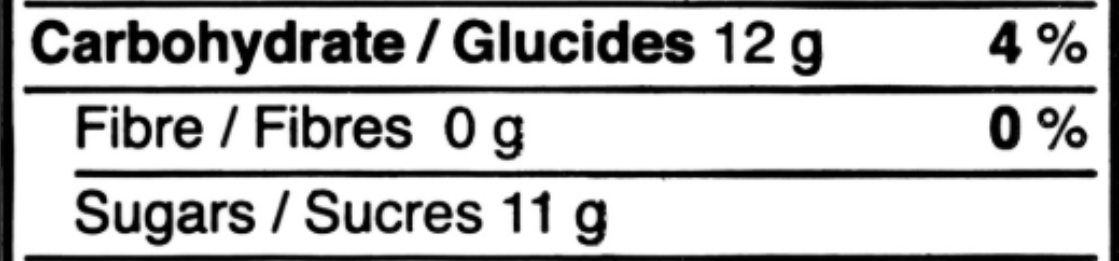 Les glucides totaux indiqués sur l'étiquette comprennent les trois types de glucides : le sucre, l'amidon et les fibres. Il est important d'utiliser le nombre total de grammes lorsque vous comptez les glucides ou choisissez vos aliments. Depuis janvier 2021, toutes les étiquettes doivent également mentionner « les sucres ajoutés ». Si des alcools de sucre sont inclus, ils seront également mentionnés ici.