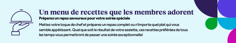 Un menu de recettes que nos membres adorent Obtenez nos recettes les plus aimées Préparez un repas savoureux pour votre soirée spéciale à la maison. Articles associés Défi de marche de gratitude Guide alimentaire de 2 000 calories 6 recettes de souper simples et sans stress Défi de 30 jours de plaisir et de remise en forme Fajitas de déjeuner avec des oignons Retour en haut