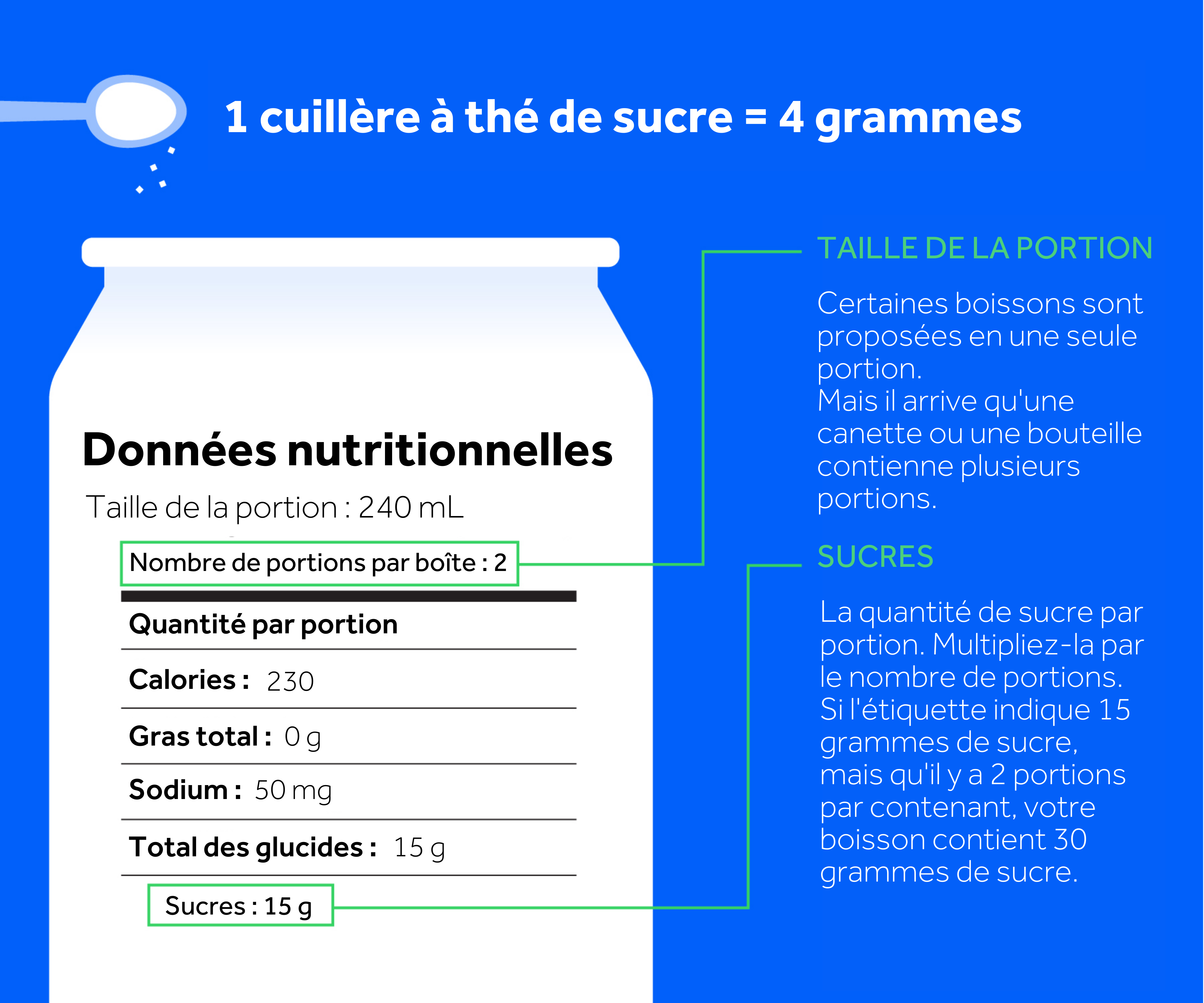 Utilisez les étiquettes nutritionnelles à votre avantage. Découvrez ces sucres cachés pour que vous puissiez faire un choix éclairé sur les boissons sucrées que vous voulez boire - et celles que vous préférez échanger contre un verre d'eau pure et sans calories.