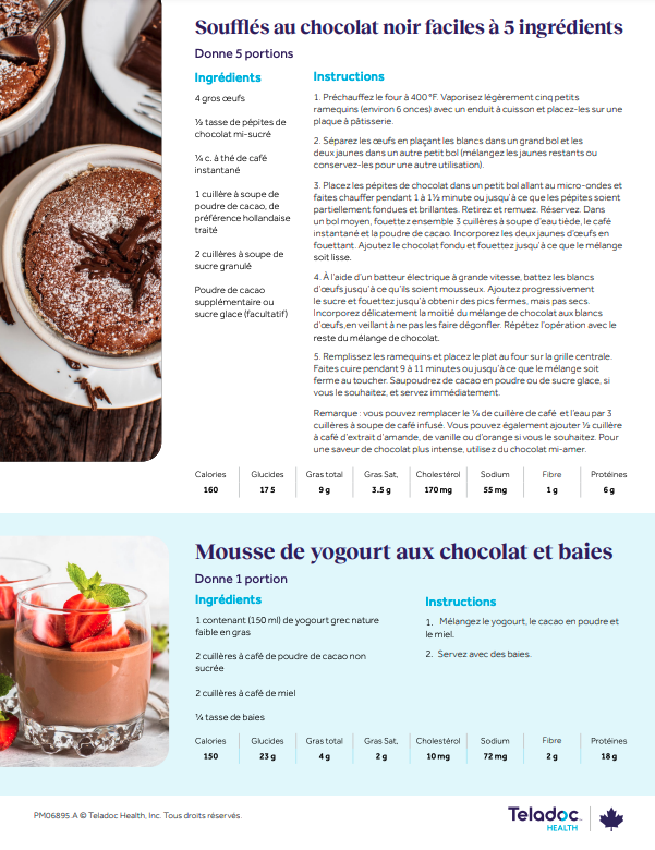 Soufflés faciles à 5 ingrédients au chocolat noir et mousse au yogourt au chocolat et aux baies Obtenez le guide Articles associés Votre guide du pain 12 façons d'arrêter de manger sous l'effet du stress Retour en haut