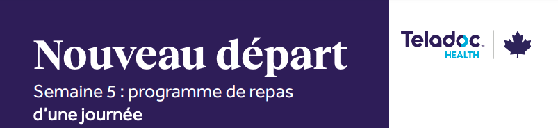 Semaine 5 de Nouveau Départ : Plan d'alimentation d'une journée Obtenez le guide Articles associés 7 idées de déjeuners faciles (Vidéo) Semaine 1 de Nouveau Départ : Plan d'alimentation d'une journée 5 repas sans cuisson prêts en 30 minutes ou moins 5 guides alimentaires savoureux Retour en haut